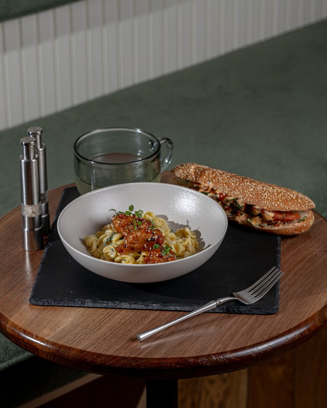 У нас есть Wi-Fi, организован бранч, готовы организовать гастрономическое оформление вашего события (кейтеринг), производится доставка блюд в офис или на дом, доступен банкетный зал - всё к вашим услугам.