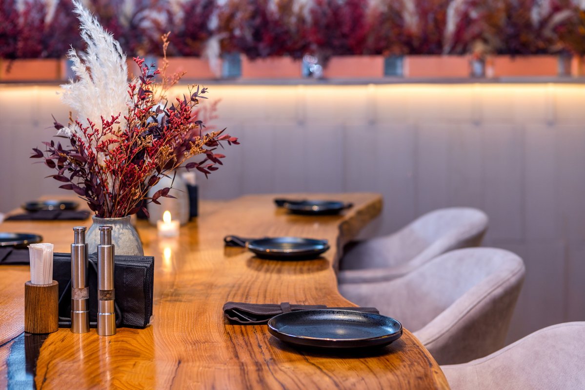 Наш ресторан обладает потрясающим панорамным видом! Он славится не только своим меню и напитками - мы берём дизайном снаружи и внутри. Если вы цените красоту вокруг, посетите наш ресторан. В тёплое время года лучше чаще бывать на воздухе. И не только чтобы погулять, но и перекусить. Для этого у ресторана Дзен есть своя терраса с выходом на улицу.
